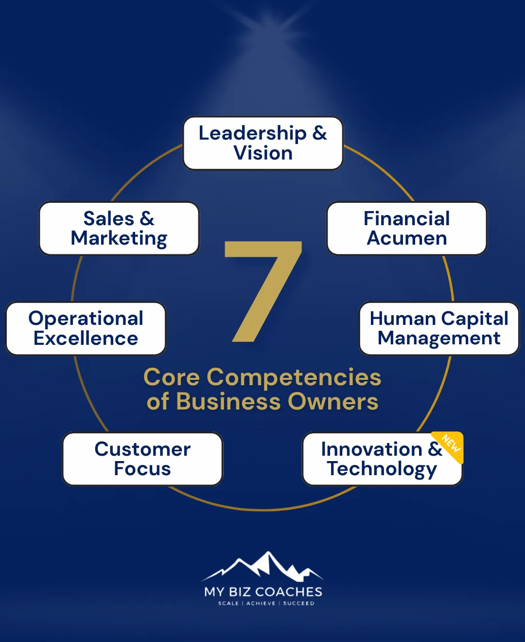 At My Biz Coaches, we have determined that there are 7 Core Competencies every business owner must solve to ensure success in their organization; these are identified in the picture to the right.